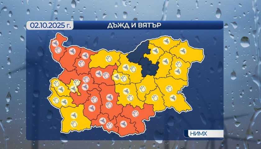 През нощта от запад ще започнат валежи от дъжд, които ще отбележат и началото на усложнената метеорологична обстановка. Ще бъде и ветровито. Вятърът ще е североизточен, умерен, в Източна България и особено по Черноморието - силен, с пориви до 90 км/ч. Обявен е код жълто. В Западна и Централна България предупреждението е за значителни валежи и е от втора степен - код оранжево, за очаквани количества до около 65 л/кв. м общо за денонощието. Температурите ще са без съществен дневен ход - минималните ще са между 6° и 11°, а максималните - от 8° до 13°, в София - около 8°.