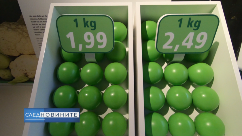 Напълно еднакви ябълки, но на различна цена за килограм. Защо? Отговорът се крие само на няколко метра от този импровизиран щанд в музея на парите във Франкфурт.