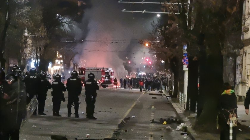 "Счупиха се доста стъкла и тълпата се приближи съвсем близко и полицията реагира."