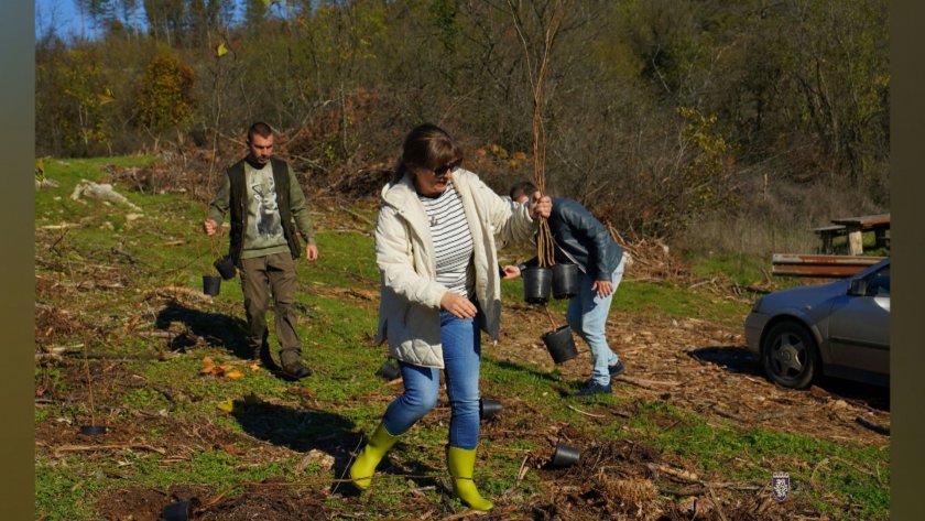 В началото на ноември започна поетапното засаждане на нови дървета, а днес се проведе най-мащабната акция. 10 000 фиданки бяха осигурени за залесяването, които се засаждат по специален метод с т.нар “Меч на Колесов”.