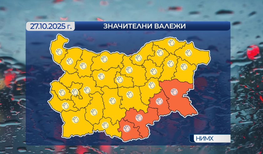 През следващото денонощие значителни валежи ще има в Южна България, особено в югоизточните райони и затова днес има оранжев код - в Бургаска, Ямболска, Хасковска и Кърджалийска област.