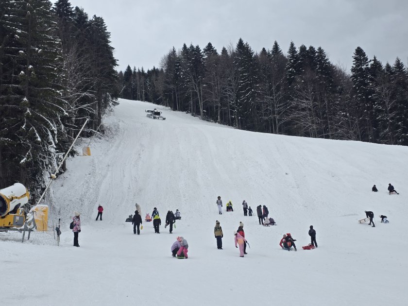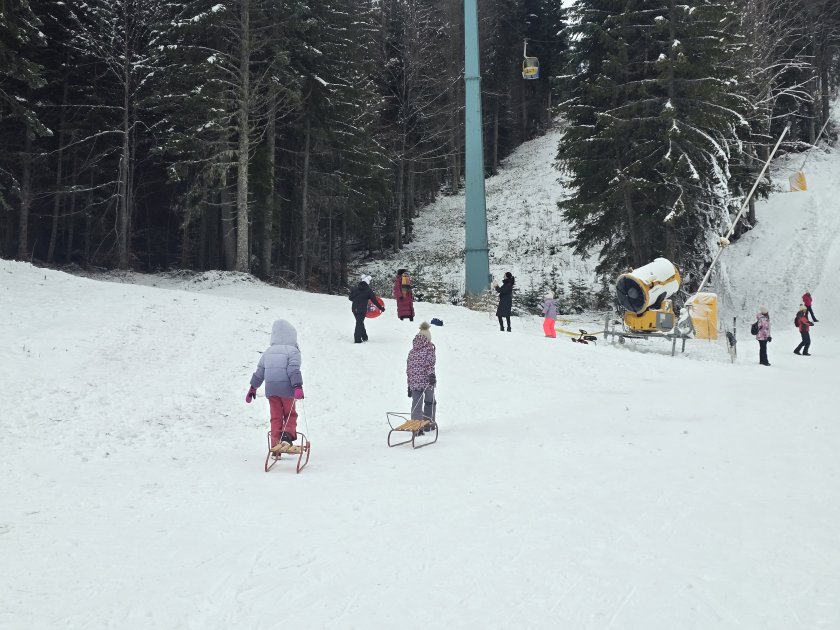 Във втория ден от новата година много хора избраха ски зона "Картала" за забавления в снега. Машини обработват пистите.