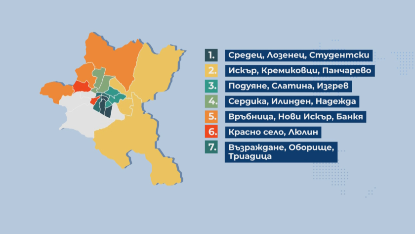 Васил Терзиев, кмет на София: "За 3-та и за 4-та зона чакаме решения на Комисията за защита на конкуренцията, като за 4-та зона при подписване на договор с изпълнител, за 5-та зона и удължаване на текущия за 7-ма, това би ни дало възможност чрез възлагане на граничните райони да покрием и 4-ти, така че и там да няма никакъв проблем със сметоизвозването. 6-та зона, там се работи по това да се подпише дългосрочен договор с Общининското дружество "Софекострой".