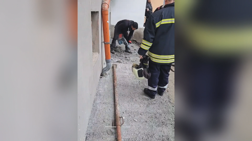 След множество подадени сигнали за мяукане изпод бетона на блок 11 в жк. "Меден рудник", днес полиция, пожарна и общината предприеха спасителна операция за бедстващото животно.