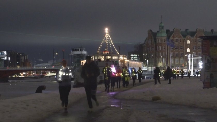 Стотици участници се включиха в нощно бягане, част от фестивала на светлината в Копенхаген.