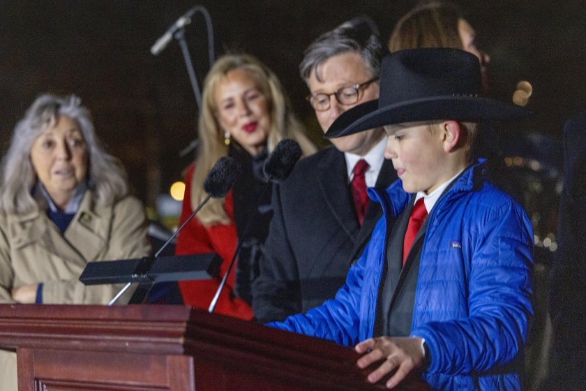 Това направи 9-годишно момче от Невада, заедно с Майк Джонсън - председателя на камарата на представителите в Конгреса. Това е първият път, в който щата Невада осигурява коледното дръвче за американския Конгрес.