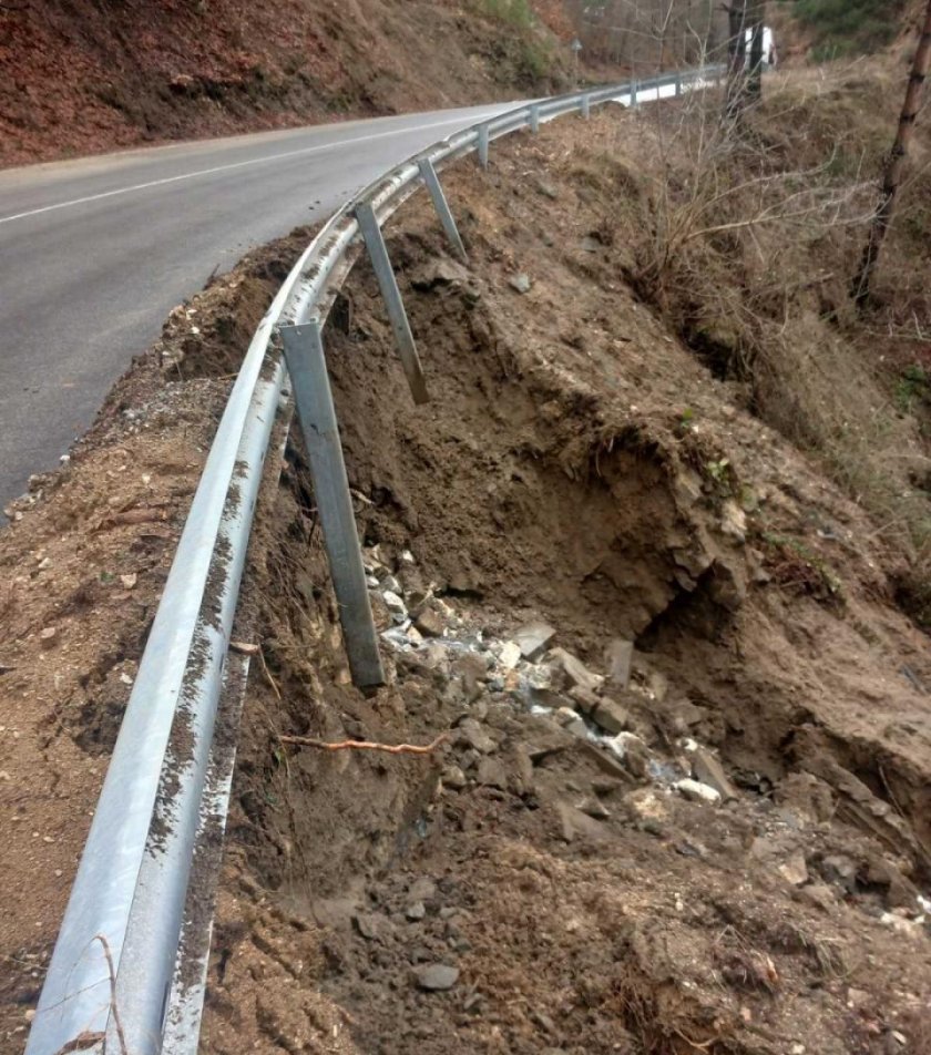 пътното платно, заради свлачища и срутвания, след обилните валежи, съобщават от Областната