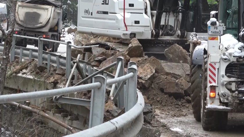 Големи скални късове са се откъснали от ската и са повлекли земна маса и дървета. Две машини на пътноподдържащата фирма още през нощта са започнали работа по разчистването. От пътната агенция посочват обходен маршрут през Асеновград-Кричим-Девин и обратно.