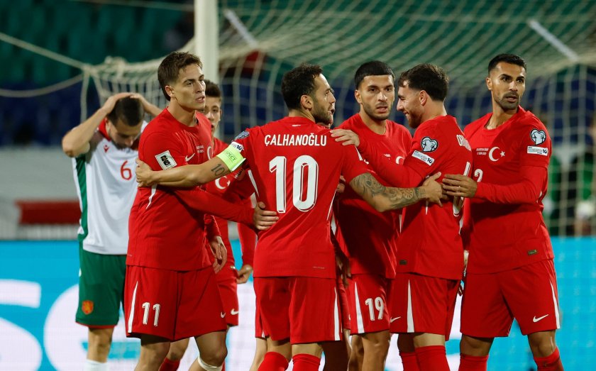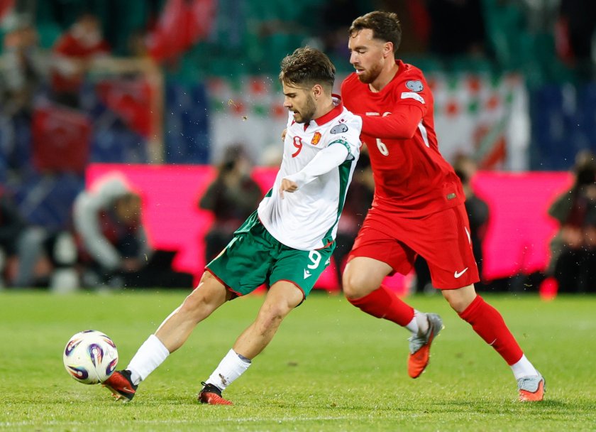 Националният отбор на България допусна тежка загуба с 1:6 в дебюта на новия национален селекционер Александър Димитров. Двата отбора се изправиха в среща в квалификационна група Е за участие на световното първенство в Северна Америка догодина, а турците решиха всичко в срещата след почивката, когато реализираха 5 гола. Почетното попадение за България вкара Радослав Кирилов, който се разписа в 13-ата минута, секунди след като турците бяха открили резултата.