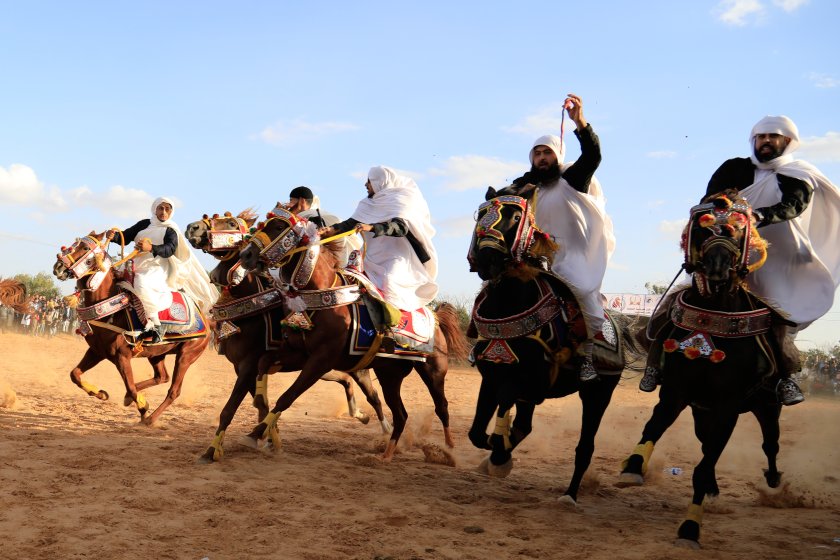 Ездачи се състезаваха с конете си на традиционен фестивал в Зелтен, Либия. Фестивалът има за цел да популяризира местната традиционна конна култура.