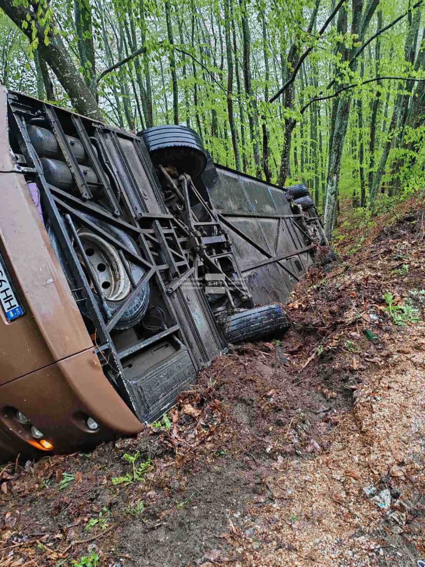От полицията съобщиха, че в 7.05 ч. е получен сигнал за настъпило самостоятелно пътно произшествие с обърнат украински автобус на пътя Бургас - Малко Търново, непосредствено преди ГКПП "Малко Търново" в посока Турция. По списък в автобуса са били 37 пътници и двама шофьори, или общо 39 украински граждани. Автобусът е в канавката и до момента са извадени всички пътници и водачите. Шестима души са транспортирани към здравни заведения в Бургас, а десет души са откарани в центъра на "Бърза помощ" в Малко Търново.