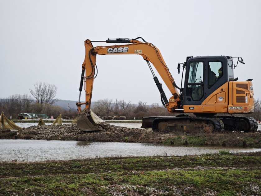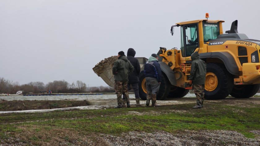 В опит да се овладее водната стихия, по спешност е мобилизирана тежка техника от съседния бетонов възел. В момента машините работят по укрепване на насипите, за да се ограничи разливът, който вече е залял голяма част от дворовете в индустриалния район.