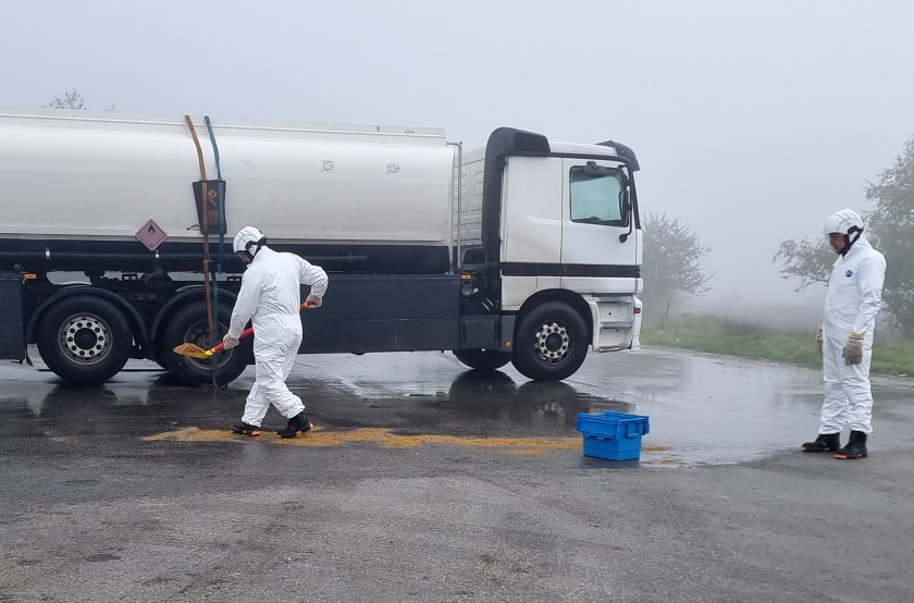 Симулацията на тежка катастрофа с изтичане на сярна киселина се разигра в район, където има много фирми, които работят с опасни химически вещества.