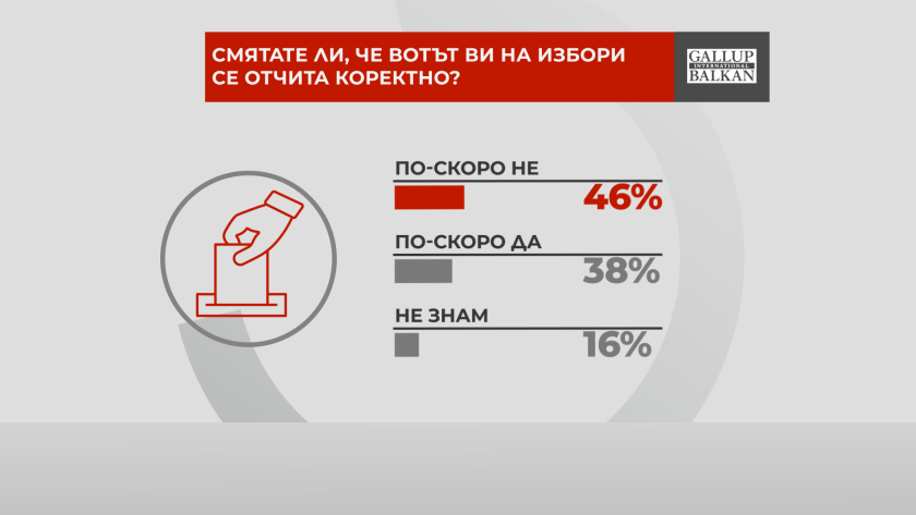 По отношение на доверието в изборния процес - 46 на сто от запитаните смятат, че гласът им на вота не се отчита коректно. На обратното мнение са 38%.