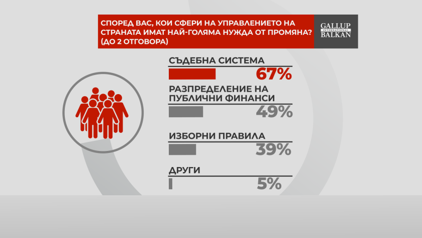 Според 67 на сто от участниците в допитването най-голяма нужда от промяна има съдебната система у нас.