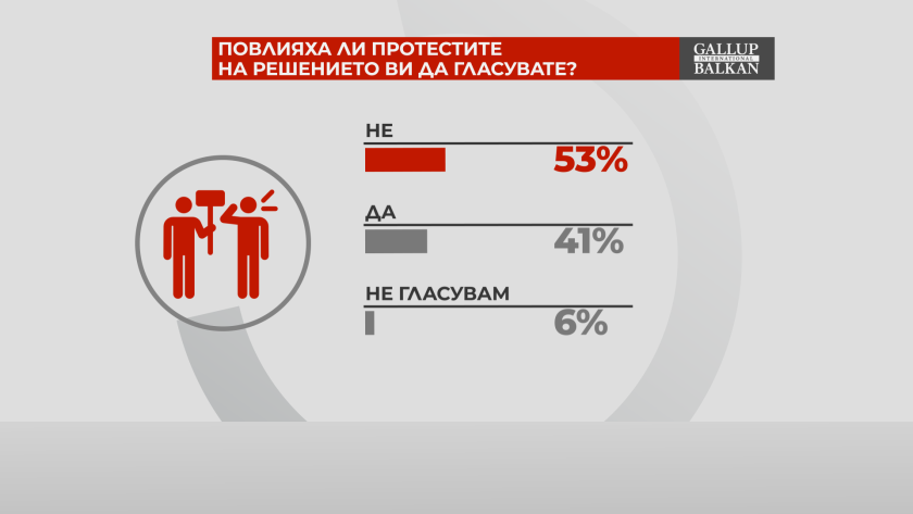Протестите са повлияли на 41% от българите за решението им да гласуват. Това показва проучване на "Галъп Интернешънъл Болкан" за предаването "Референдум".