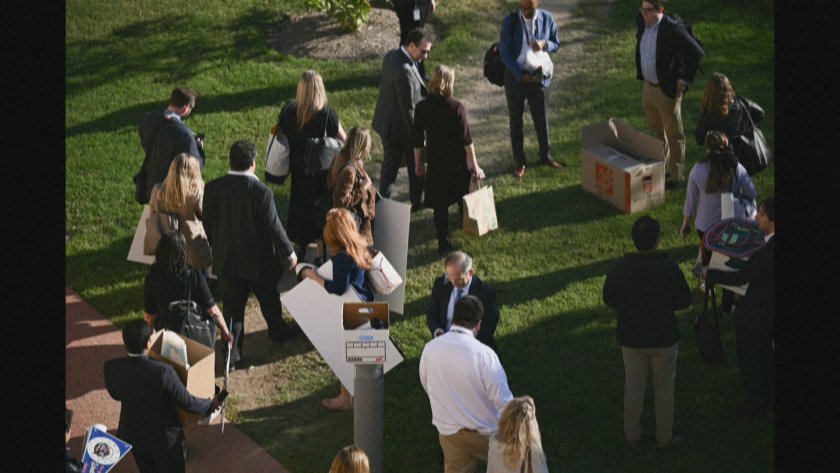 Около 40-50 журналисти излязоха заедно от сградата малко след 16 ч. - крайният срок, поставен от министъра на отбраната Пийт Хегсет да приемат нови правила за отразяване на новините.