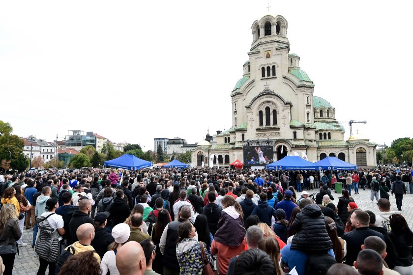 Хиляди се събраха на площад „Александър Невски“, за да гледат заедно финала по волейбол между отборите на България и Италия. Развълнувани българи следяха напрегнато играта на огромна видеостена.