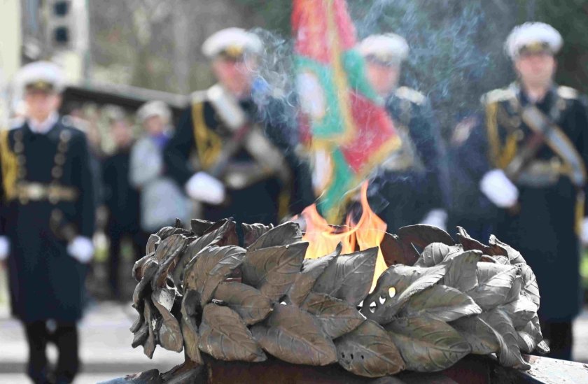 Командирът на Военноморските сили контраадмирал Кирил Михайлов прие строя на почетния караул, след строят мина в тържествен марш пред паметника.