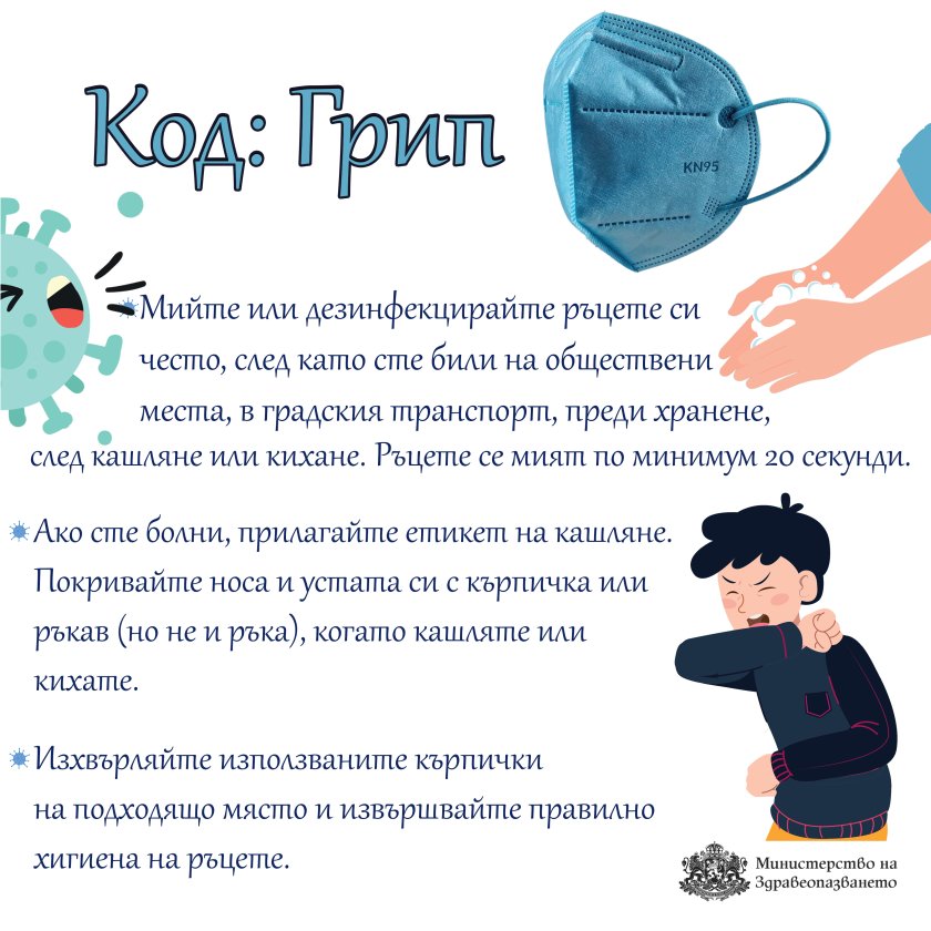 Във връзка с интензивното разпространение на грип и остри респираторни заболявания в страната, Министерството на здравеопазването напомни на гражданите основните препоръки за предпазване и намаляване на риска от заразяване през настоящите празници.