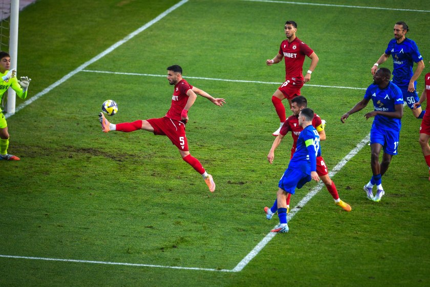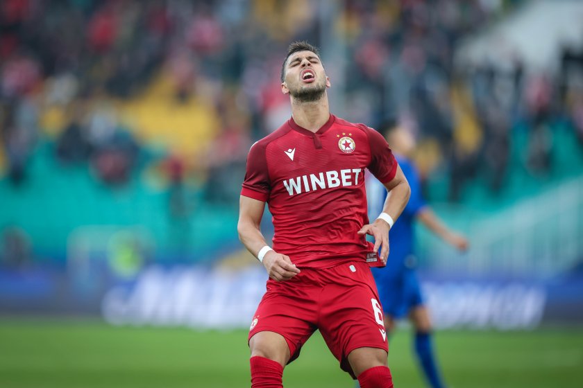 В 44-ата минута ЦСКА най-накрая прати удар по посока вратата на Светослав Вуцов. Бруно Жордао пробва късмета си от дистанция, но топката прелетя над целта.