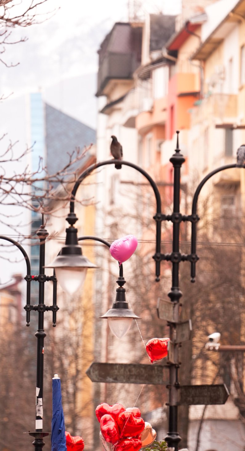 Улиците оживяват с усмивки, витрините блестят в червено и розово, а въздухът сякаш е изпълнен с любов. Балони във формата на сърца се издигат над площадите, цветарските магазини са отрупани с рози, а двойки се разхождат хванати за ръка из центъра.