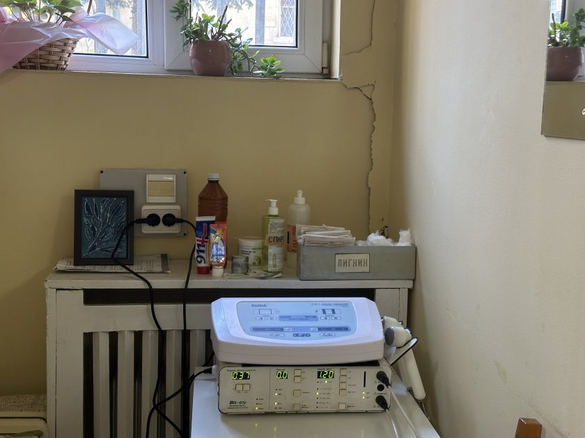 Така изглежда една от стаите в отделение на приземния етаж на Втора градска болница. Въпреки разрухата персоналът продължава да работи.