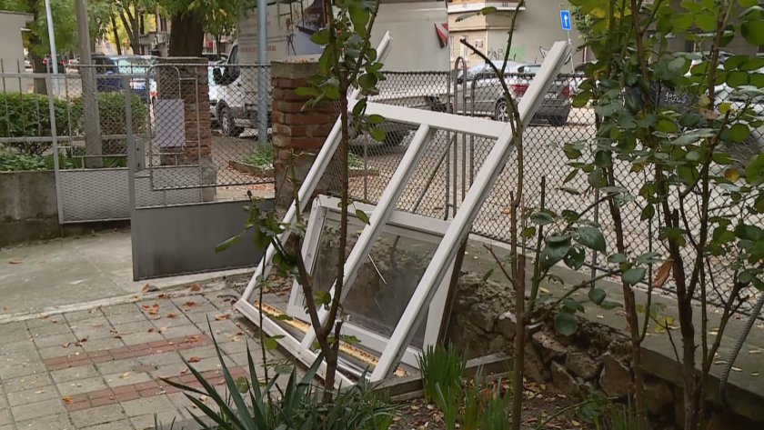 От ударната вълна остъклението и части от дограмата са паднали на тротоара.
