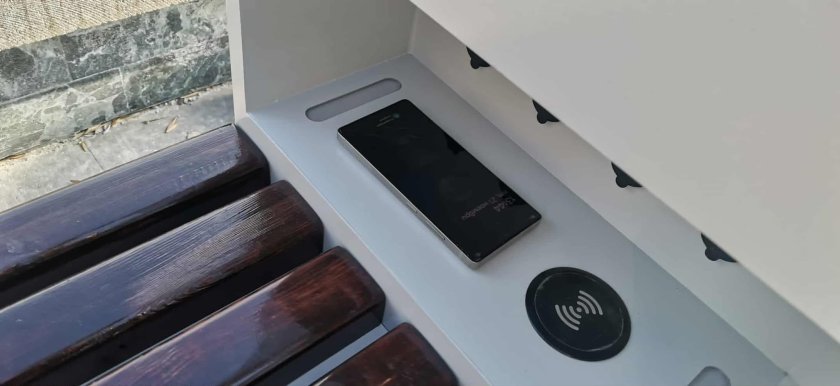 Пейката разполага с два порта за безжично зареждане на мобилни устройства и осем порта за жично зареждане