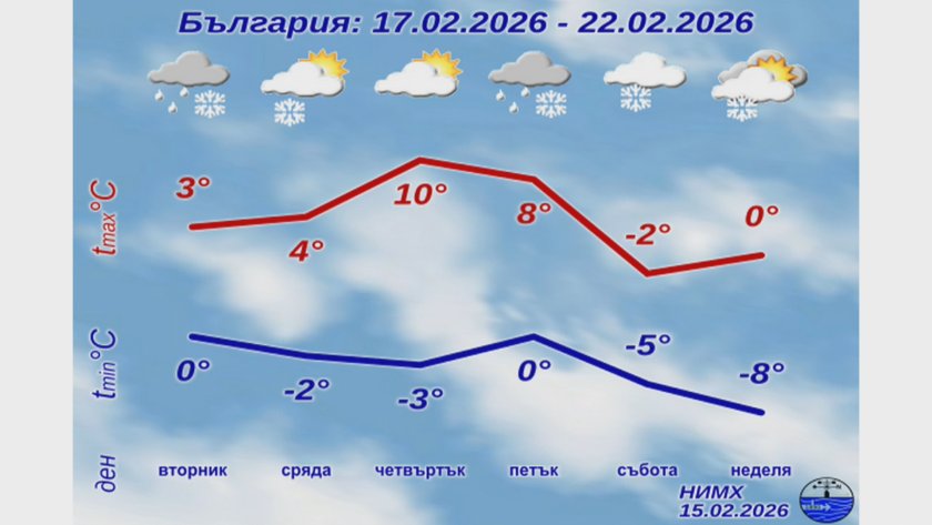 Подобряване на снежната покривка и застудяване ще се наблюдава до края на седмицата. В някои райони минималните температури ще бъдат и под минус 10-12 градуса.