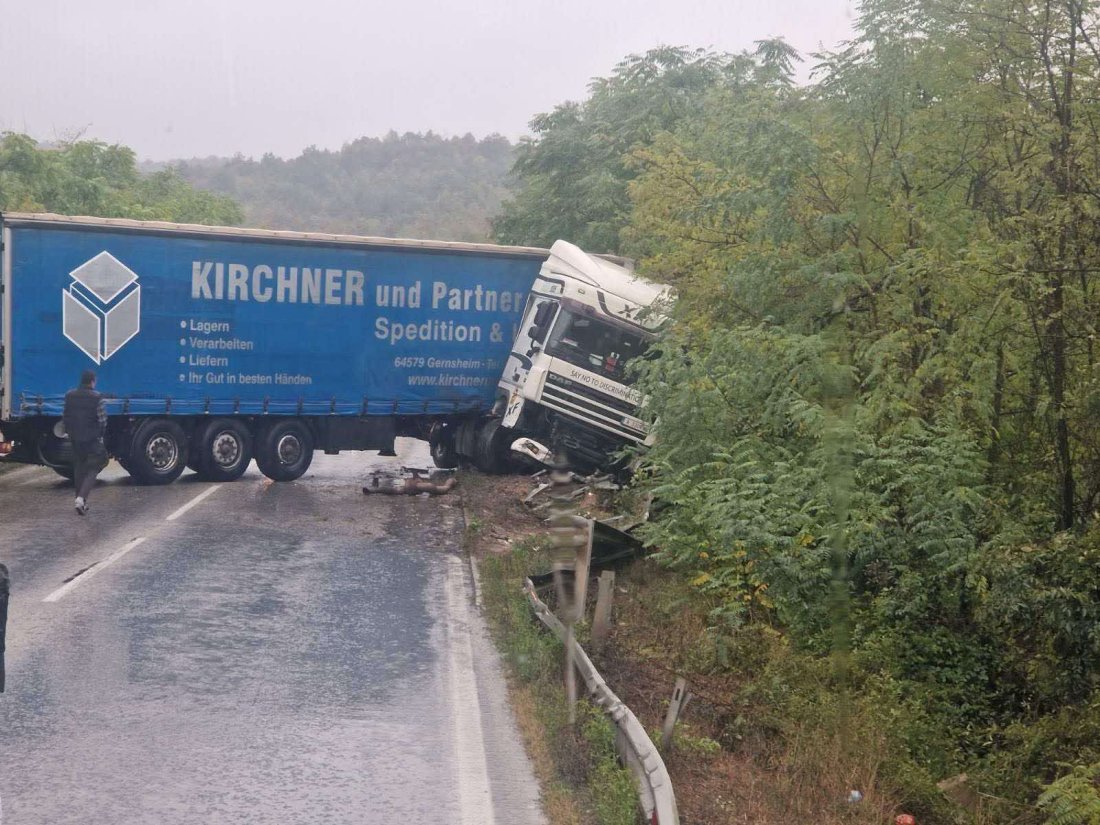 Временно е затворен за движение Проходът на Републиката заради завъртян товарен автомобил в района на разклона за с. Радковци.