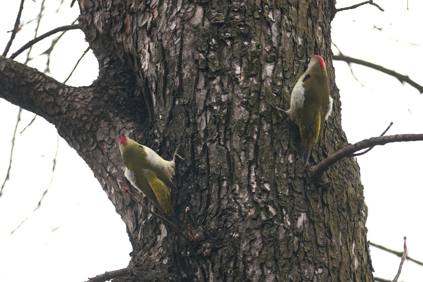 Група зелени кълвачи се хранят в столичния парк "Борисова градина". Зеленият кълвач е защитен вид, включен в закона за биологичното разнообразие в България.