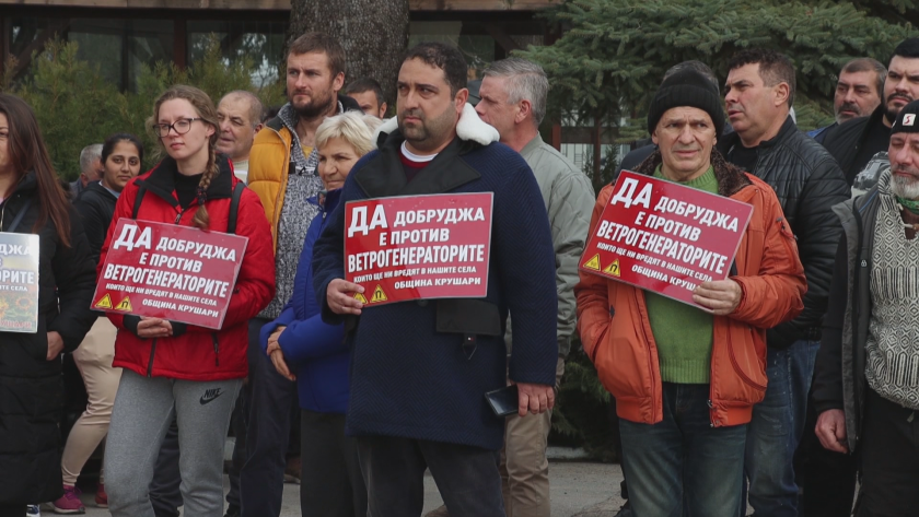 Протест срещу инвестиционното намерение за изграждане на енергиен парк с 80 ветрогенератора в землището на седем села се състоя пред сградата на Община Крушари. Той беше организиран от сдружение „Бялата лястовица“.