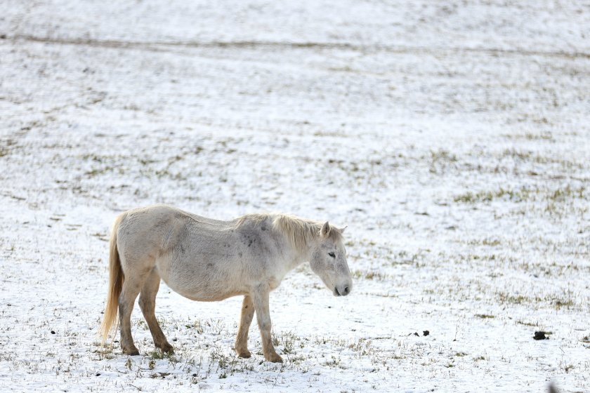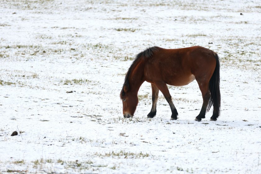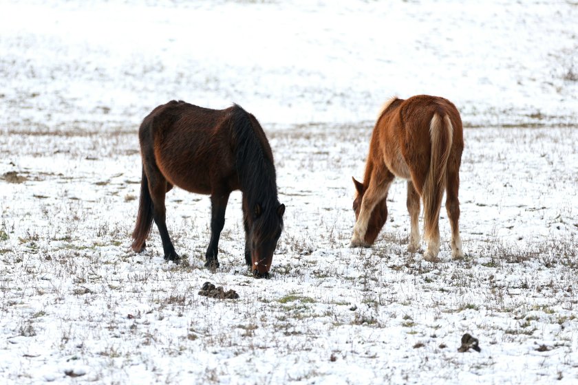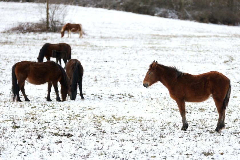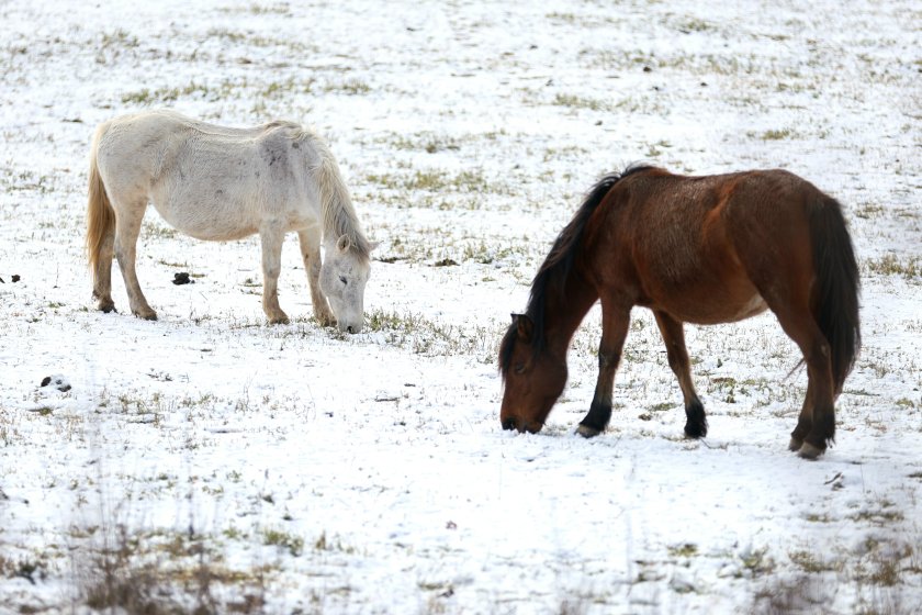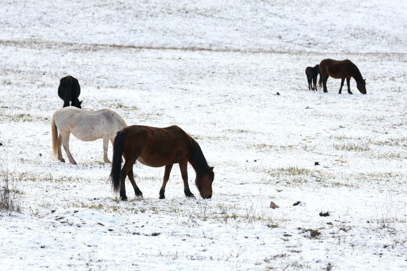 В мразовития зимен ден стадо коне пасе на воля в стопанство край Софийското село Калугерово.