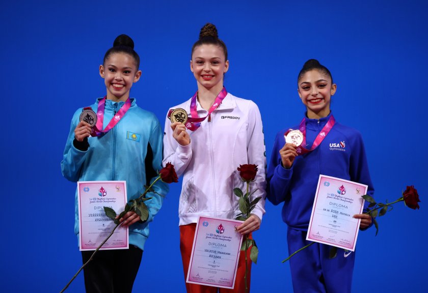 Родната грация завърши пред Акмарал Йерекешва от Казахстан, която получи оценка от 26.950 точки. Натали Де Лароса от САЩ взе бронзовото отличие с 26.450.