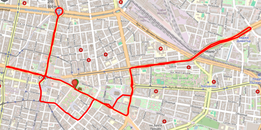 - бул. „Кн. Александър Дондуков“ между пл. „Независимост“ и ул. „Бачо Киро“;