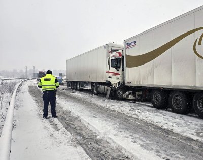 20 тира закъсаха в снега и блокираха движението на входа на Шумен